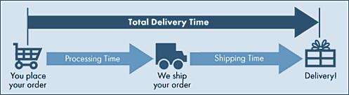 How long is the delivery time ? Total delivery time is split into two parts: Processing and Shipping