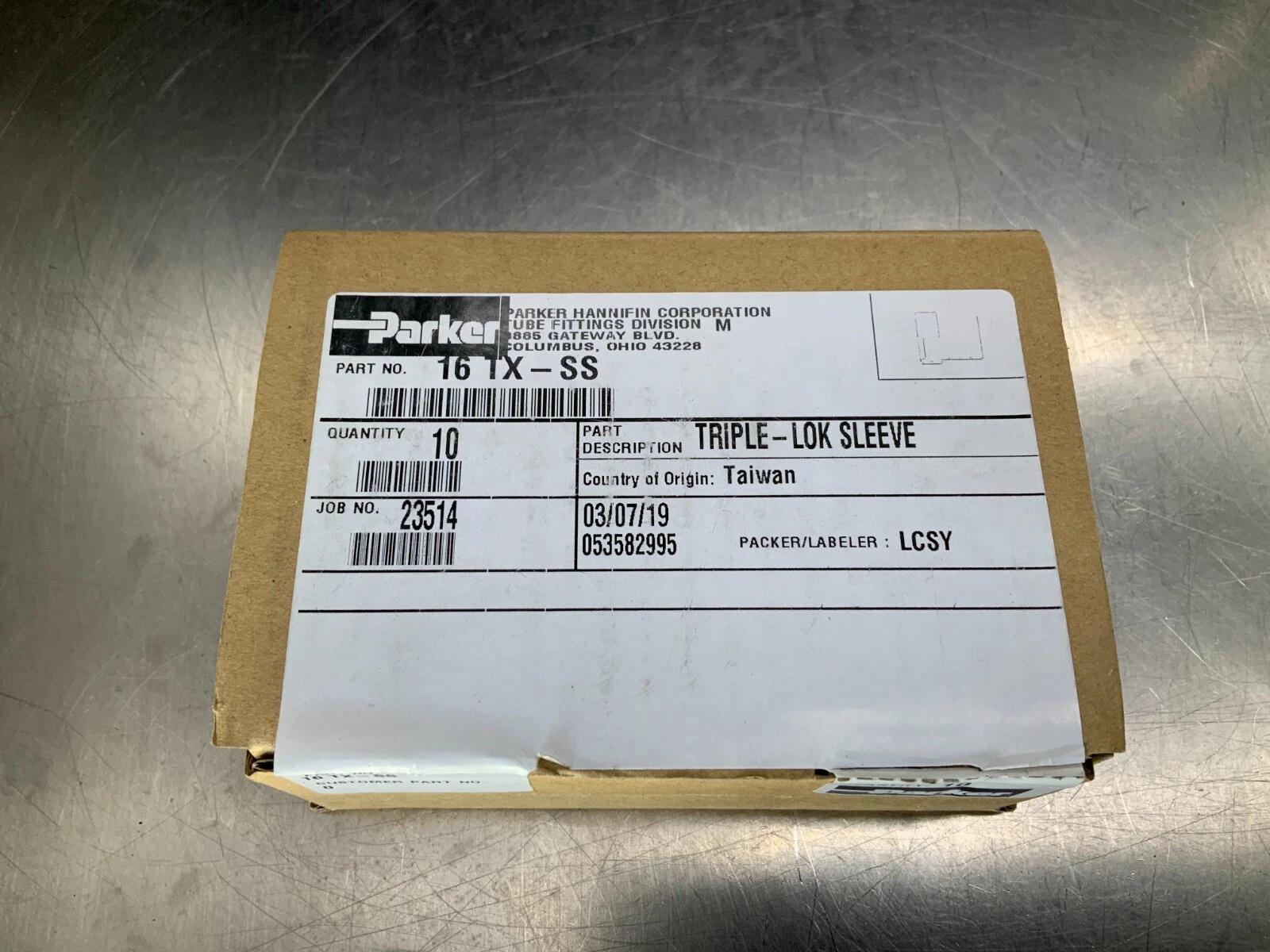 (10) Parker 16 TX-SS Triple-Lok Sleeve Stainless Steel. Listing is for a box of 10