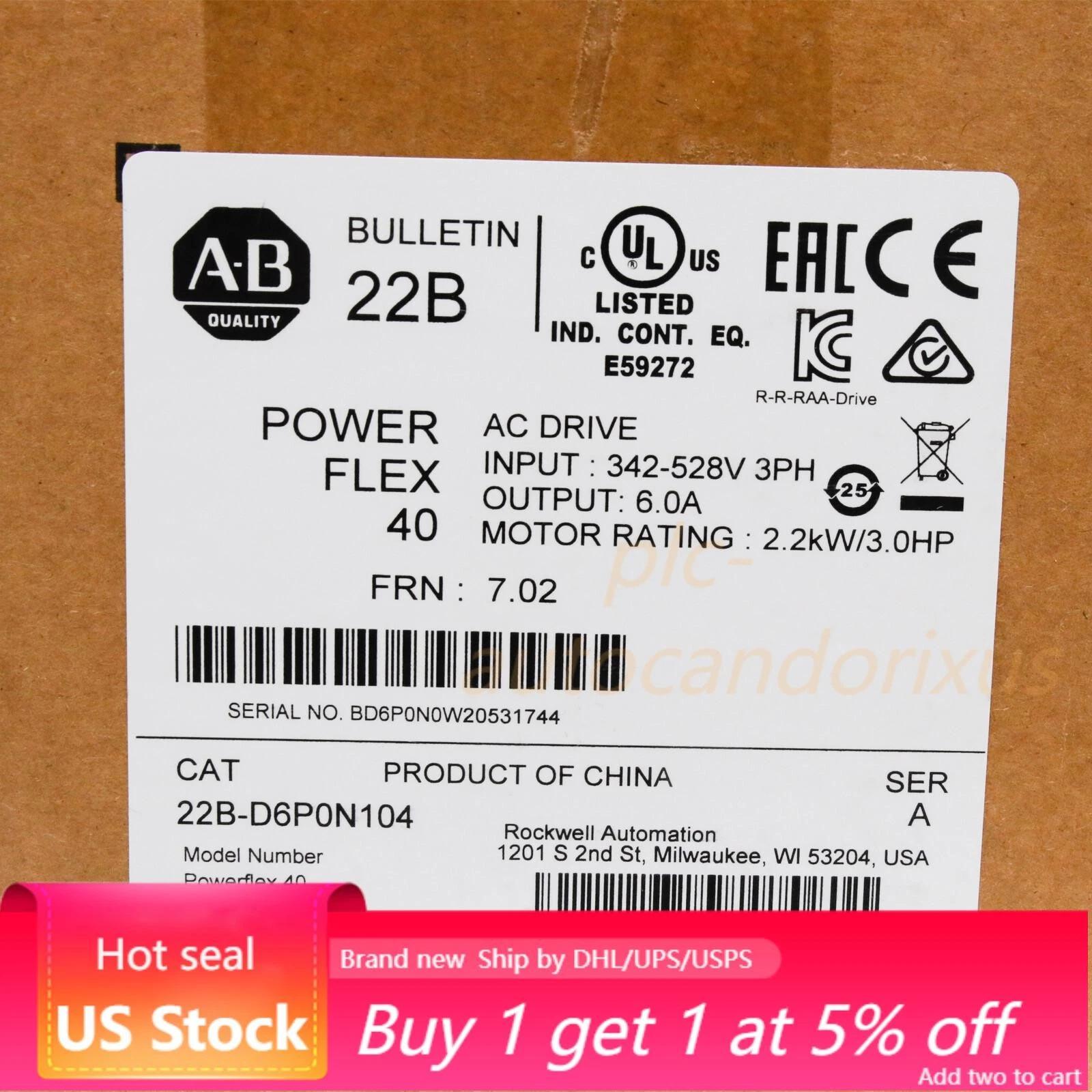 HomeReady 2 Ship InventoryDrives & StartersDrives & Motor Controls22B-D6P0N104 Allen-Bradley PowerFlex 40 2.2KW/3.0HP AC Drive US Free Tax