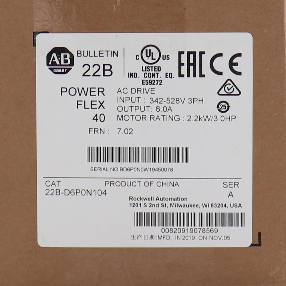 HomeReady 2 Ship InventoryDrives & StartersDrives & Motor ControlsAllen-Bradley 22B-D6P0N104 PowerFlex 40- 2.2 kW 3 HP AC Drive 22BD6P0N104
