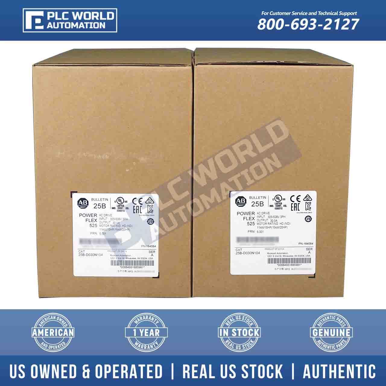 Allen Bradley 25B-D030N104 Ser A PowerFlex 525 AC Drive 15kW 20Hp, New Sealed