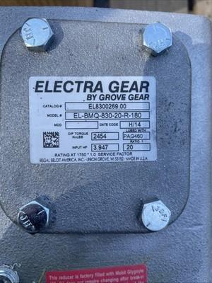 Grove Gear Electra EL-BMQ-830-20-r-180 Gear Reducer Cat # El8300269.00. Shipped with USPS Ground Advantage.