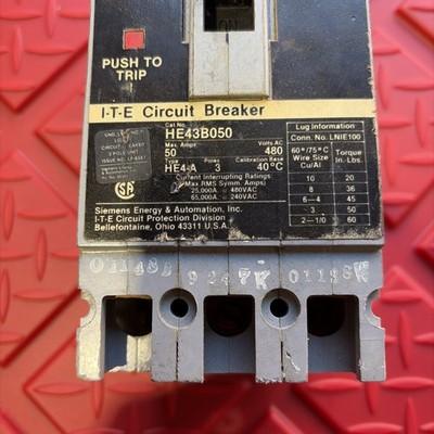 HomeReady 2 Ship InventoryIndustrial SuppliesSiemens I-T-E HE43B050 480V 50A Amp 3 Pole Circuit Breaker 3 Phase