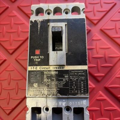 Siemens I-T-E HE43B050 480V 50A Amp 3 Pole Circuit Breaker 3 Phase